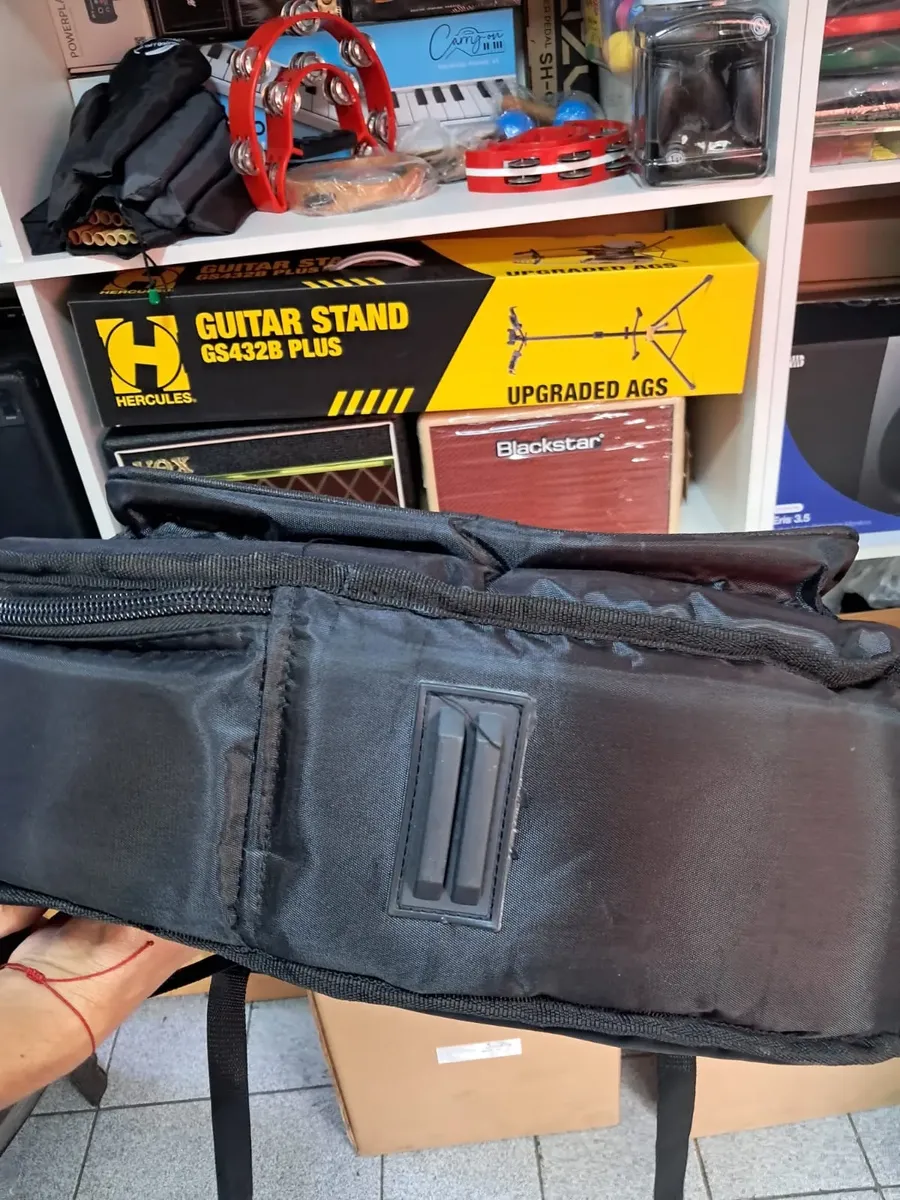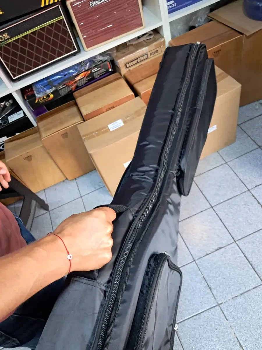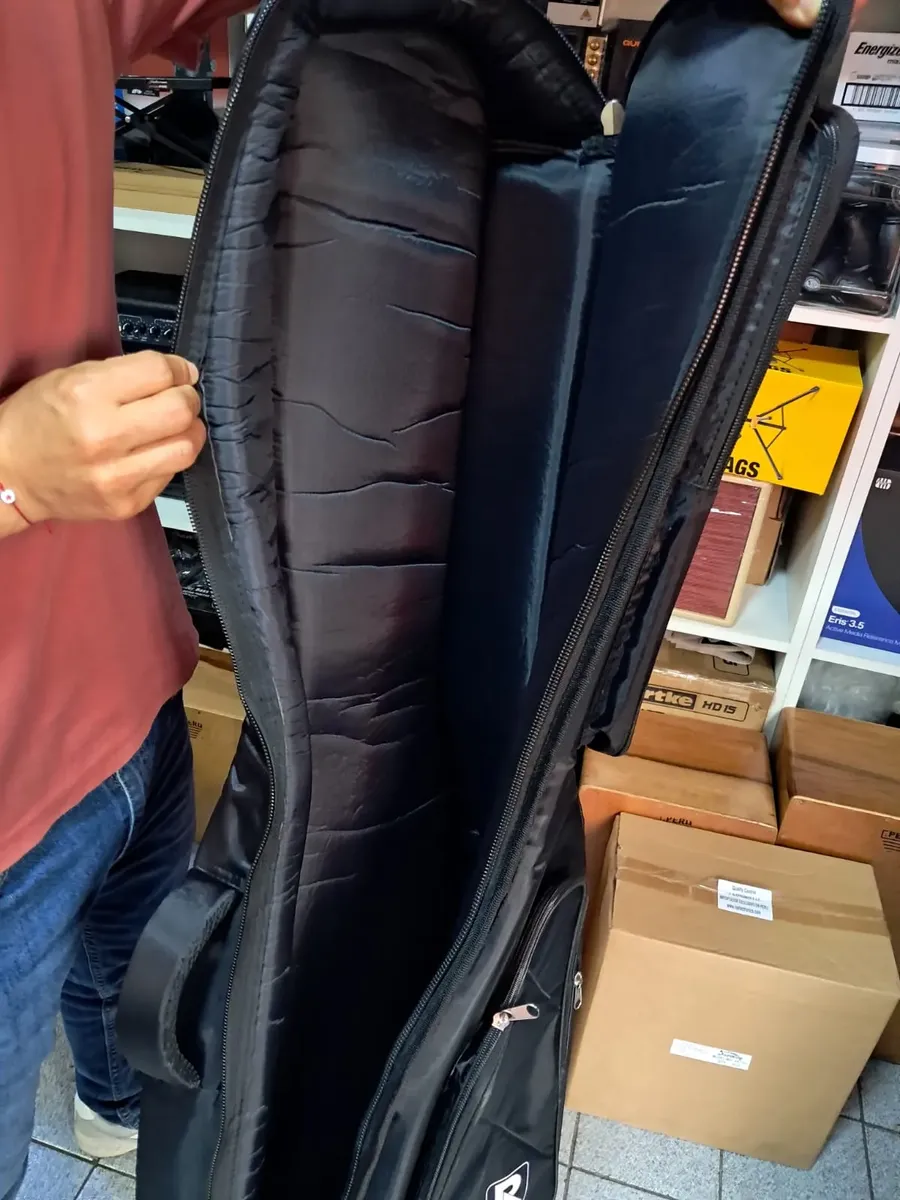 Con dimensiones interiores de 102 cm de largo, 38 cm de ancho y 12 cm de alto, esta funda se adapta perfectamente a guitarras clásicas. Además, cuenta con prácticos bolsillos que permiten llevar accesorios como cuerdas, afinadores o partituras, facilitando tu experiencia musical. Su peso de 1200 g la hace ligera y fácil de transportar, ideal para músicos en movimiento.